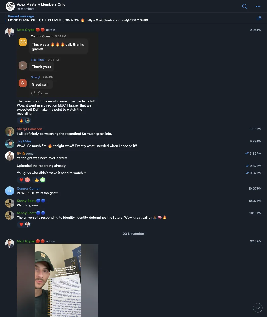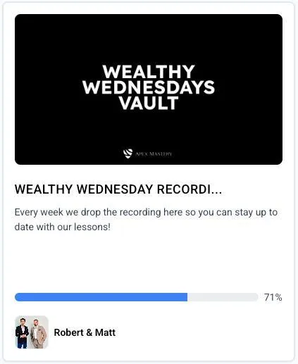 "Having the ability to learn from Matt and Rob, who have been there and have done most of the things that people aspire to do, and to have the wisdom and insights they provide to us that can really take you to the next level, has really helped me gain clarity on where I want to go in life. If you want to take your life to the next level and you're hungry for MORE in life, I would encourage you to join Apex Mastery and experience all the value and education first hand."